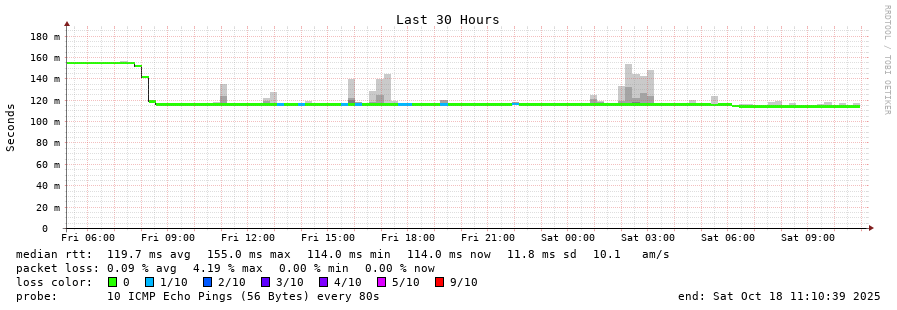 11 > 191.97.49.170 (191.97.49.170) [AS28032] 115.697ms 115.680ms 115.655ms
