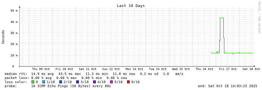 traceroute to graph.facebook.com (157.240.229.17), 30 hops max, 60 byte packets - Generated at 2025-10-18 14:00:01